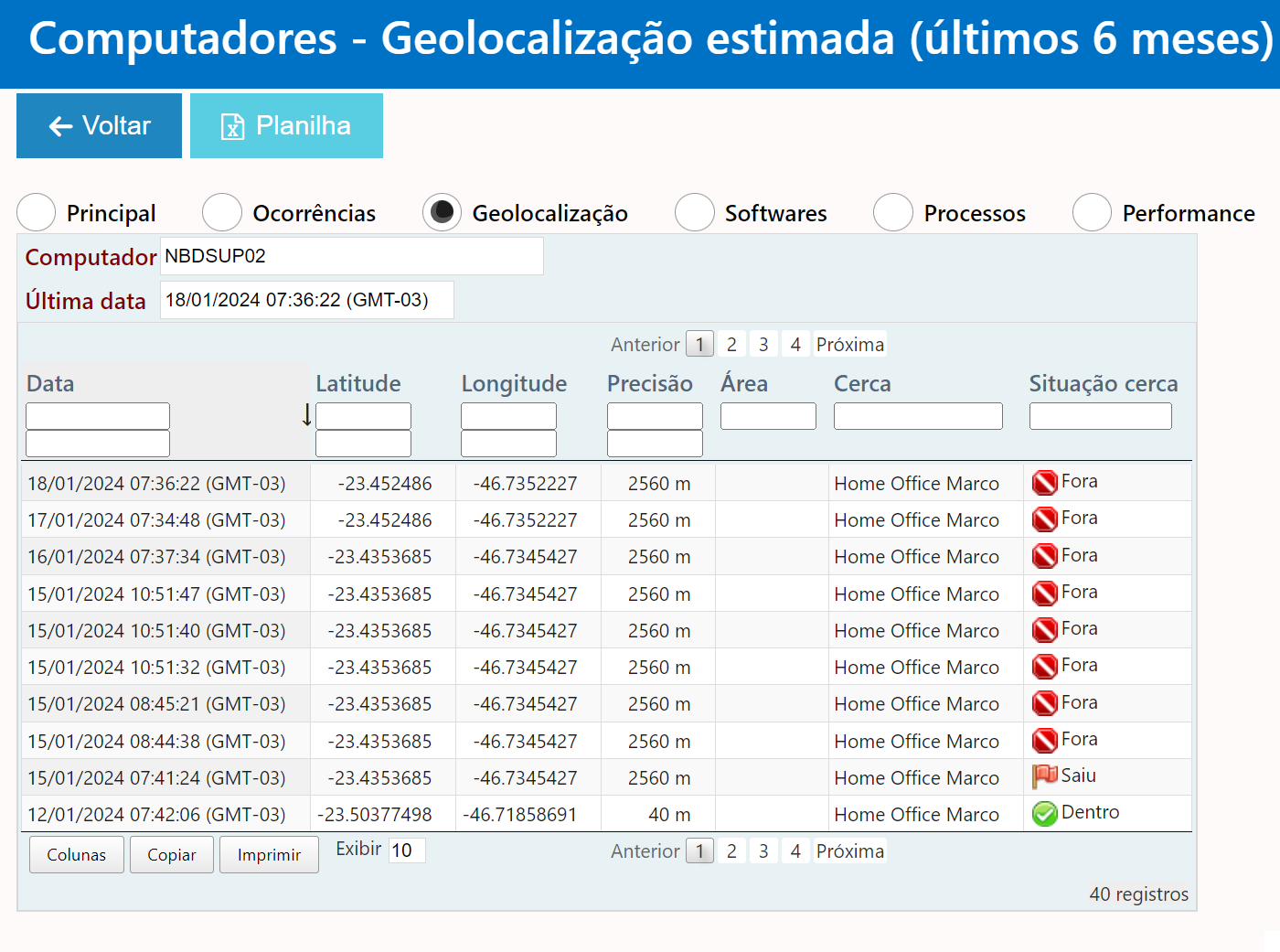 Todos los dispositivos (computadoras de escritorio y portátiles) serán rastreados diariamente y de forma continua, y nuestros registros mostrarán su historial de geolocalización durante los últimos 6 meses. No se requiere la instalación de hardware GPS adicional en computadoras de escritorio y portátiles; la identificación por geolocalización se basa completamente en software.